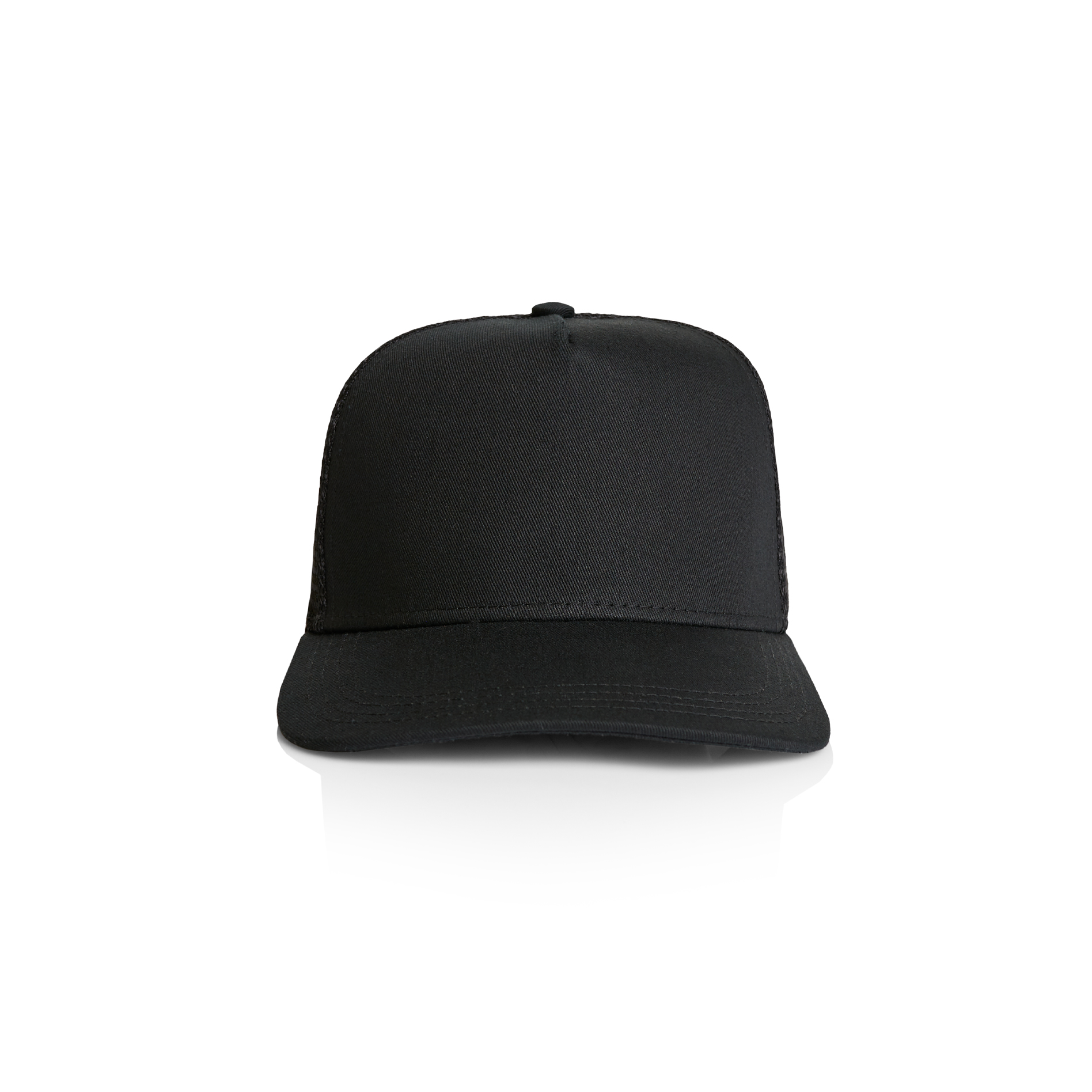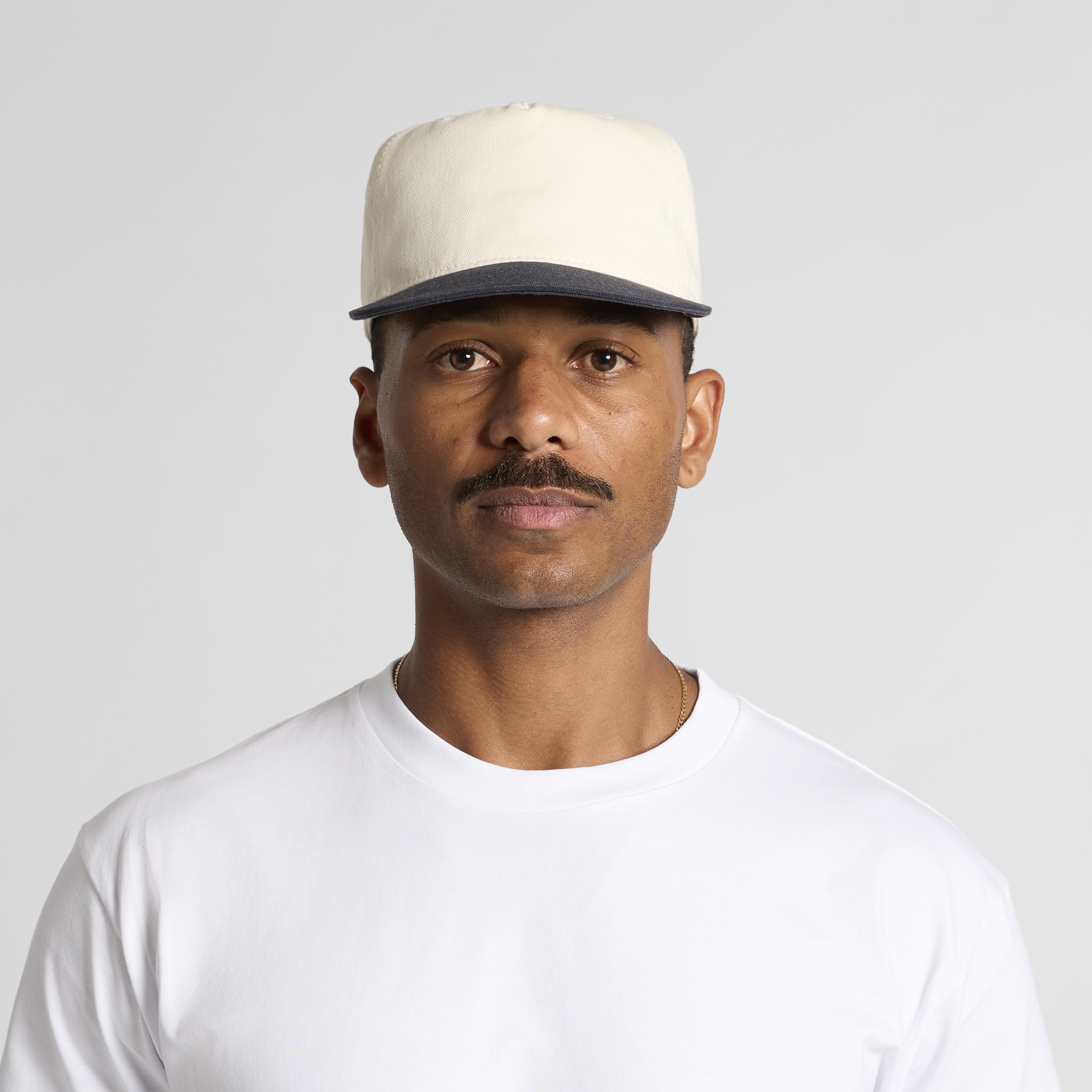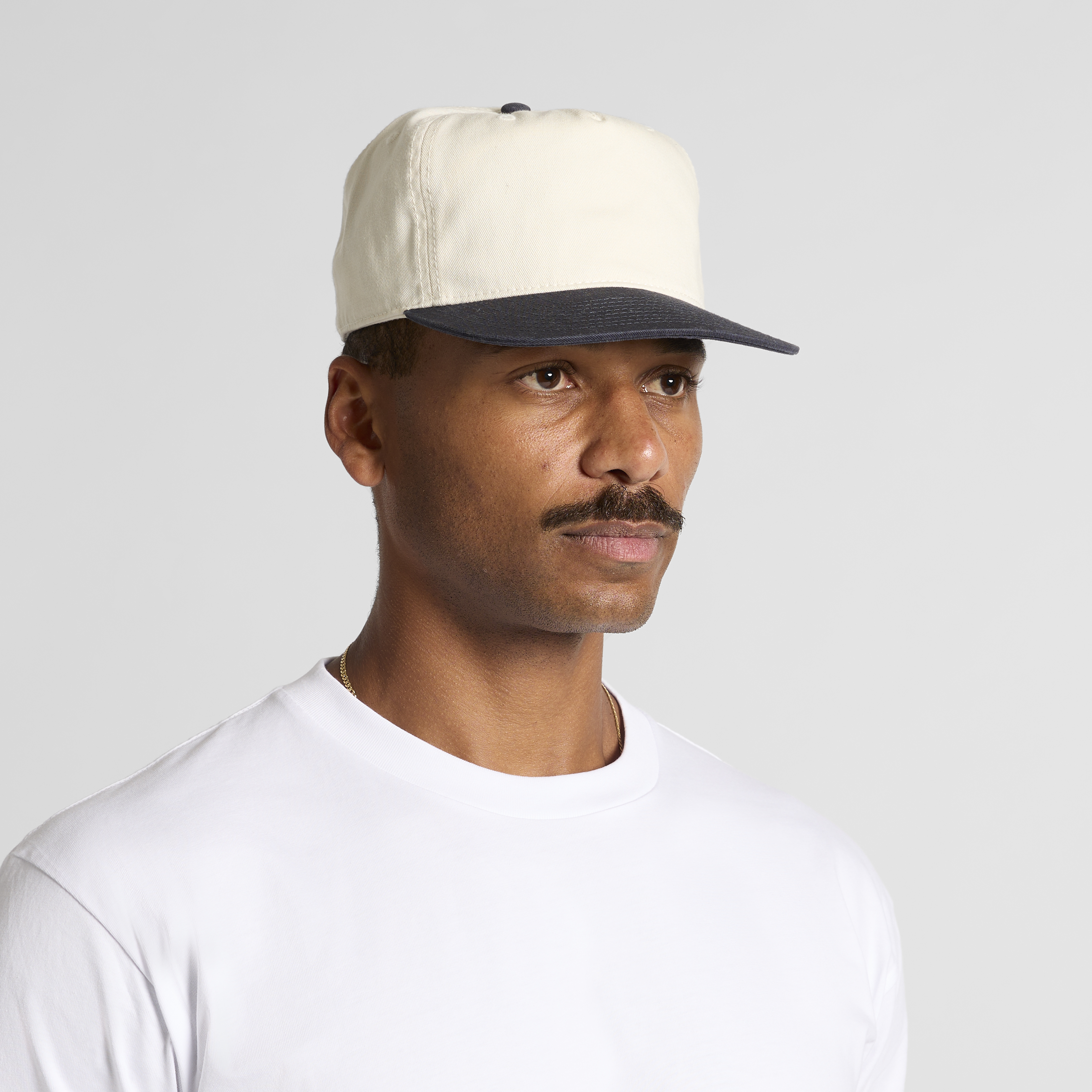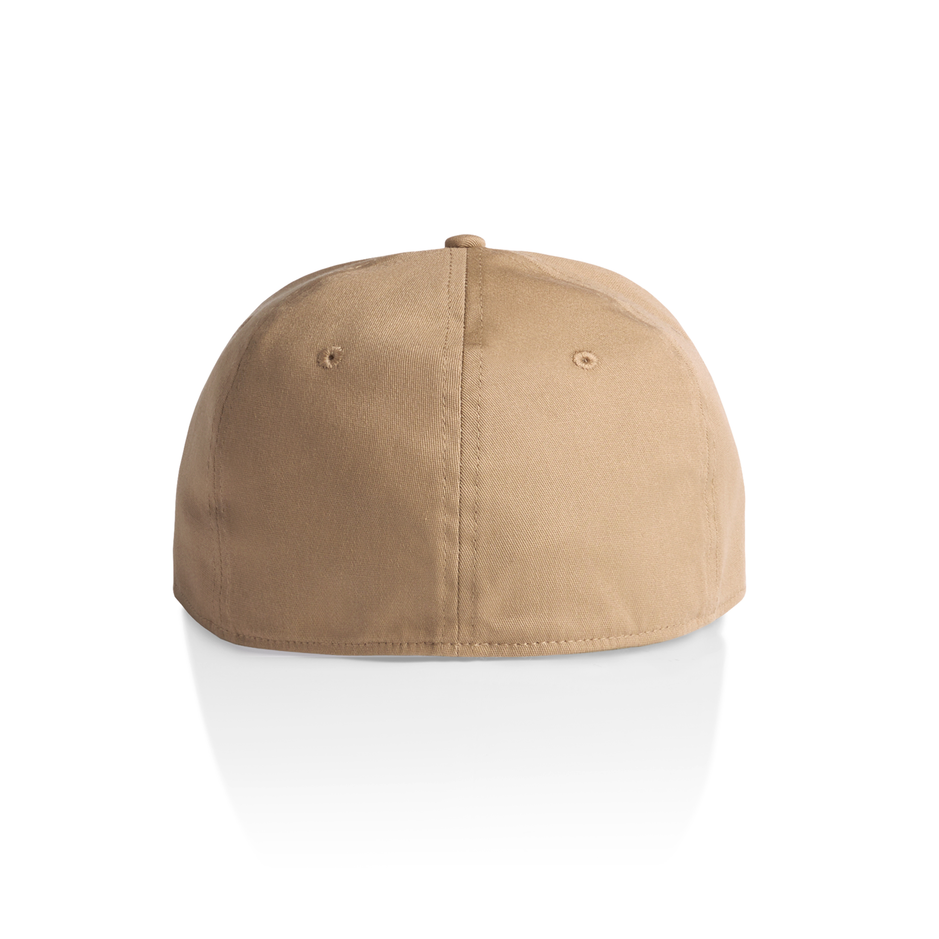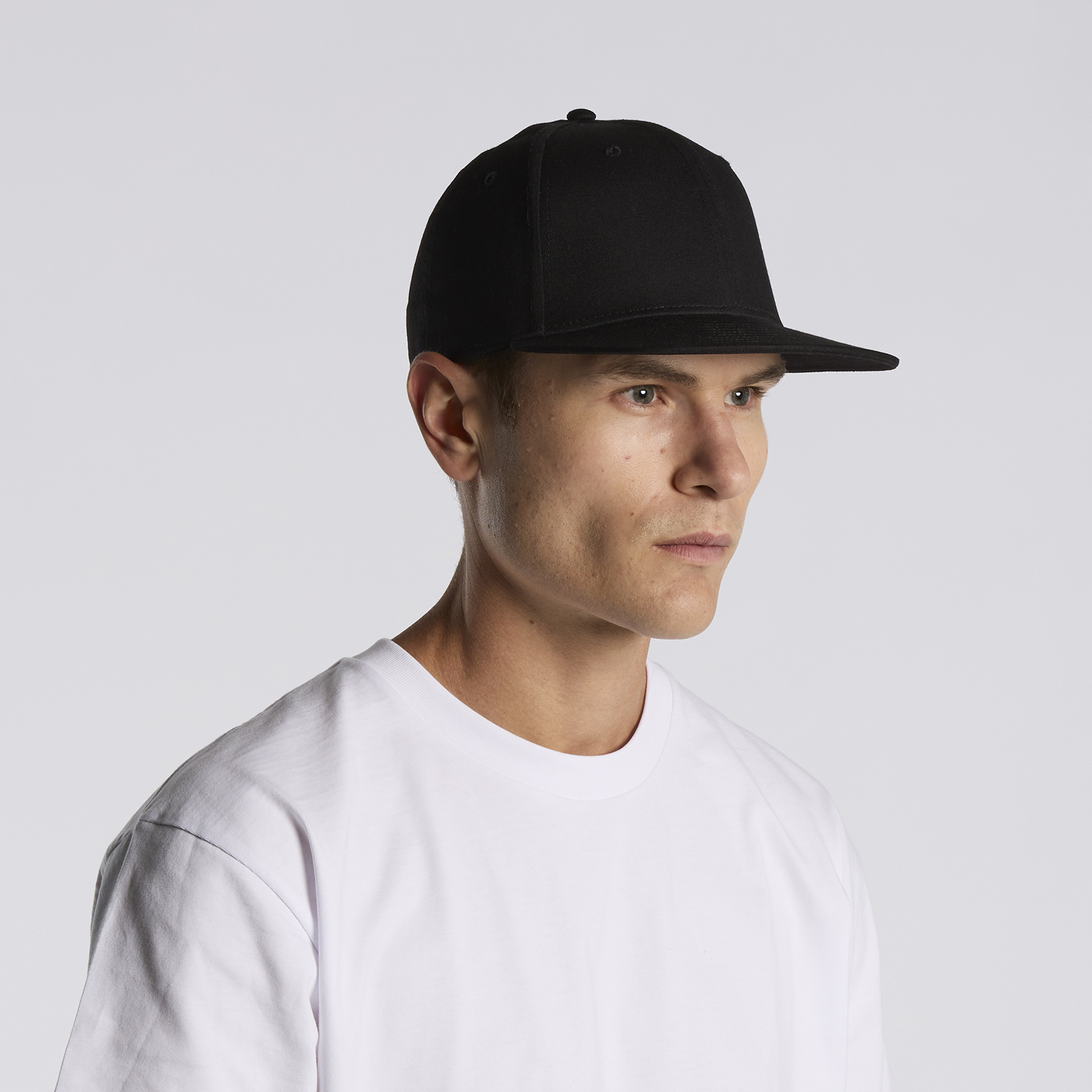 Low profile, five panel cap, internal mesh structure support, flat peak