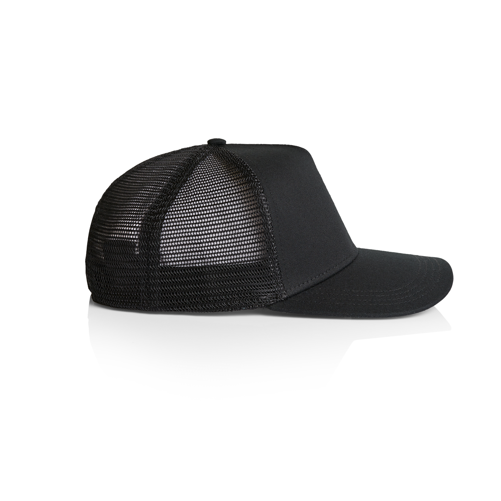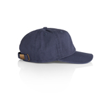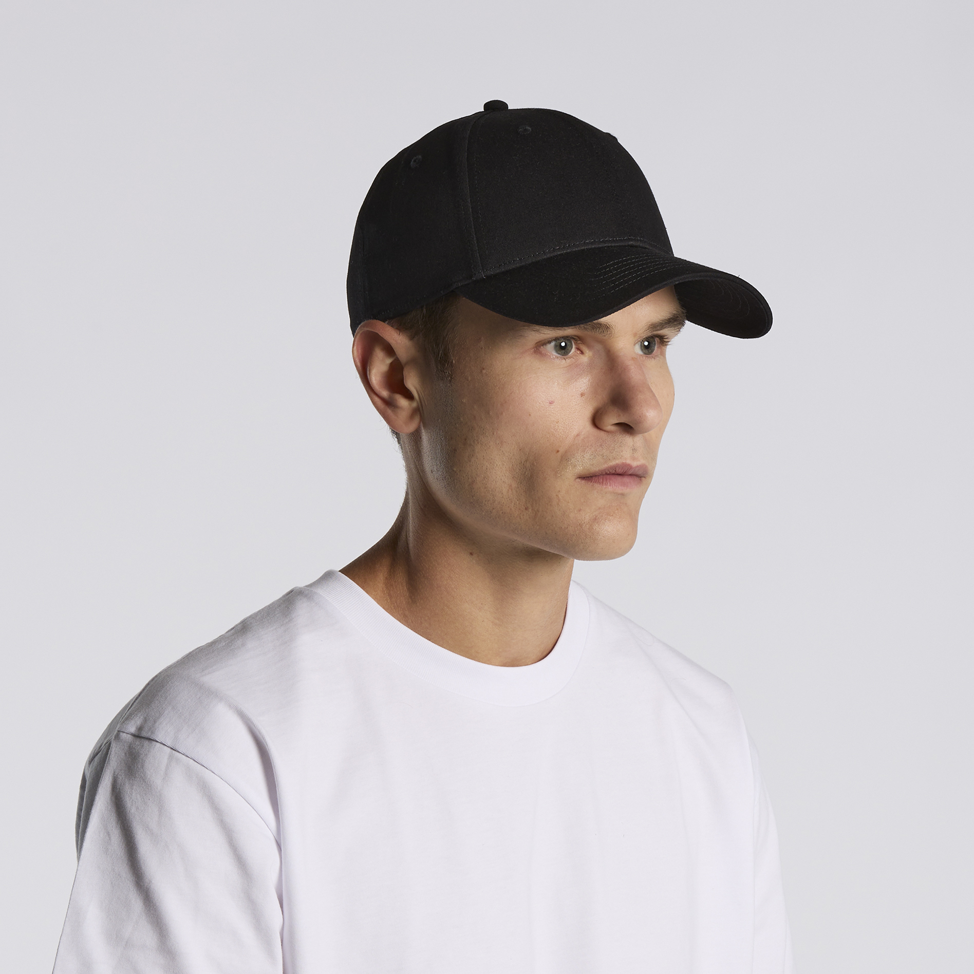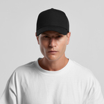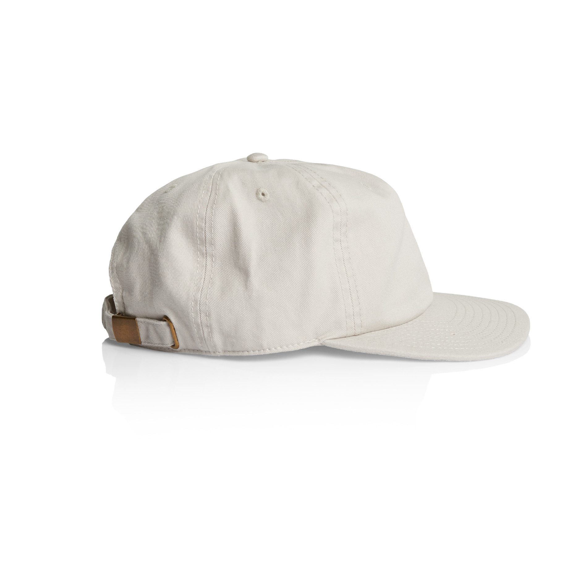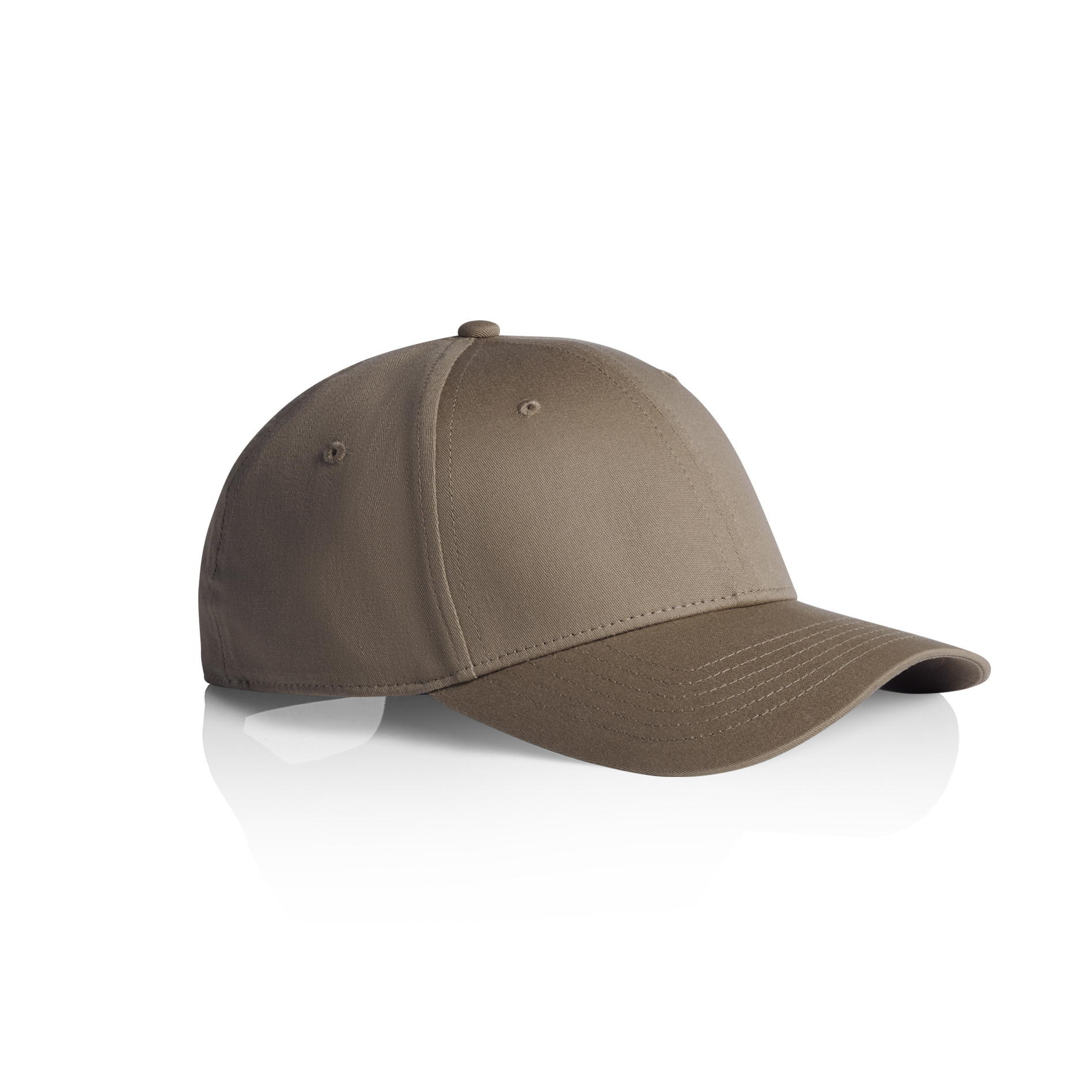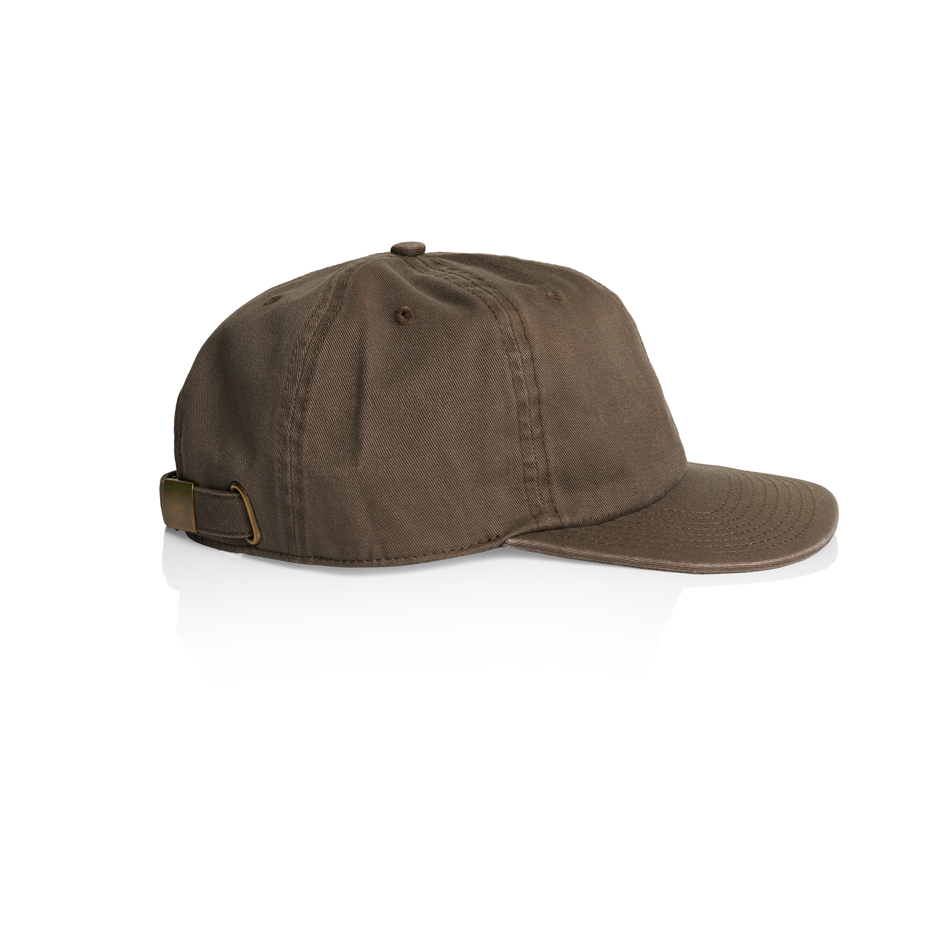 Low profile, five panel cap, internal mesh structure support, flat peak