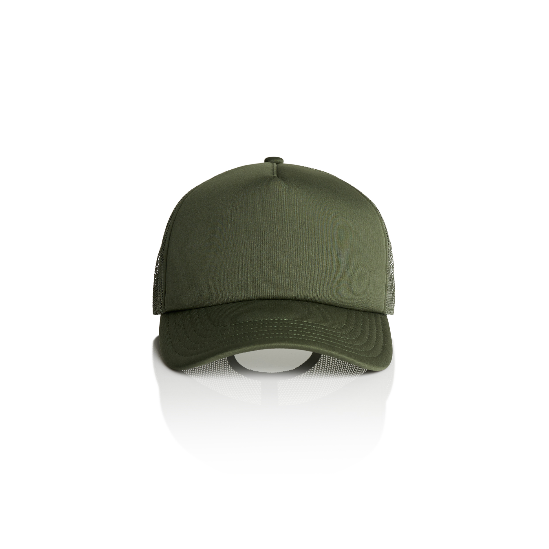 100% polyester foam front and peak, 100% Recycled polyester mesh back